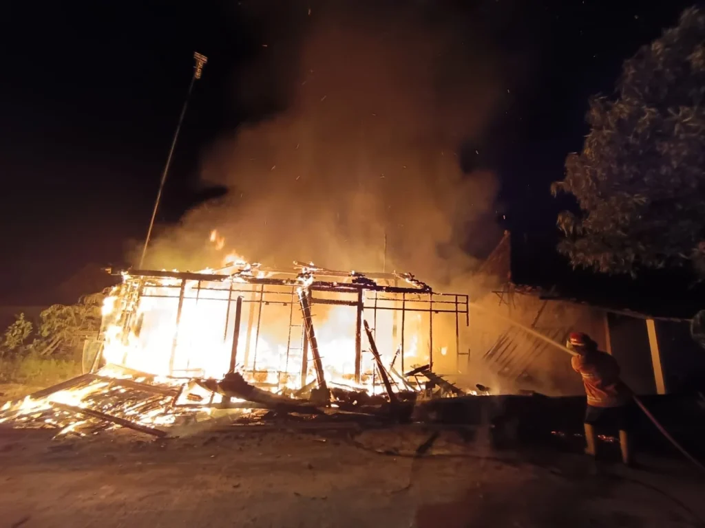 Tribuanapost.com-Rembang,Kebakaran hebat melanda Desa Ngadem, Kecamatan Rembang, Kabupaten Rembang, pada Jumat malam (28/11/2025). Insiden yang menghanguskan satu rumah warga ini menimbulkan kerugian materi yang ditaksir